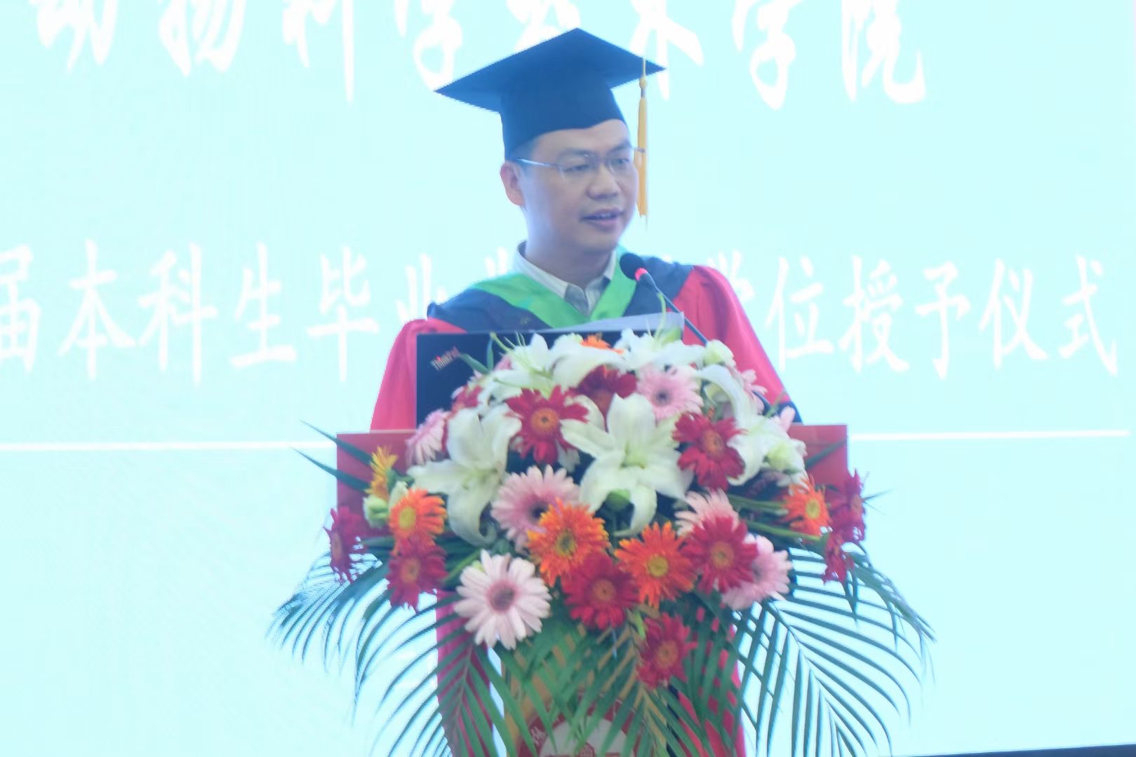 受益匪浅的主题思政课。永利yl23411官网党委书记陈弘教授亲临毕业典礼现场为动科学子上离校前的最后一堂主题思政课,他向各位毕业生寄语“信奉常识,躬耕日常”的八字箴言,勉励大家要做有骨气、有底气、有朝气、接地气时代新人。希望同学们情系家国、志存高远,保持勇于担当的精神风貌,自觉担起时代赋予的历史使命与时代责任。