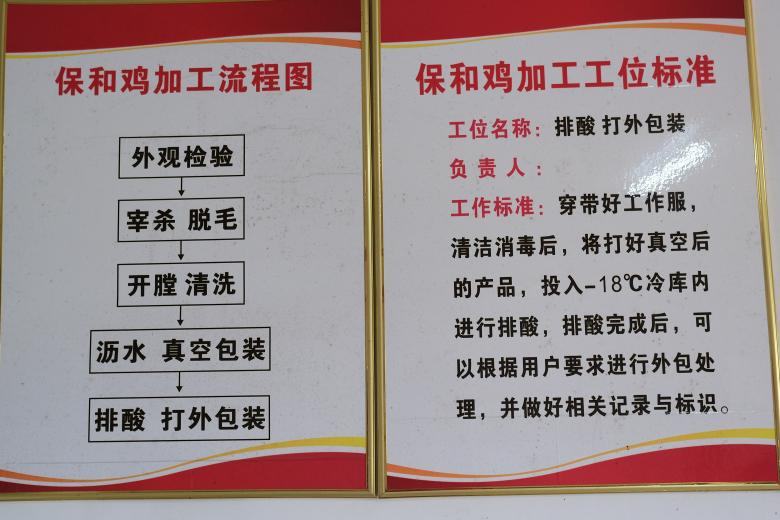 上午,团队抵达保丰农业开发有限公司保和鸡加工车间,观察记录保和鸡的加工,从外观检查到宰杀脱毛、开膛、清洗、沥水、真空包装、排酸、外部包装等全部操作流程。接着,团队检查了屠宰场的消毒状况,贺长青教授对屠宰场的后期规划提出发展现代化流水线生产和无菌化消毒处理的建议。通过无人机航拍观察周边环境,为后续规划建设取证。