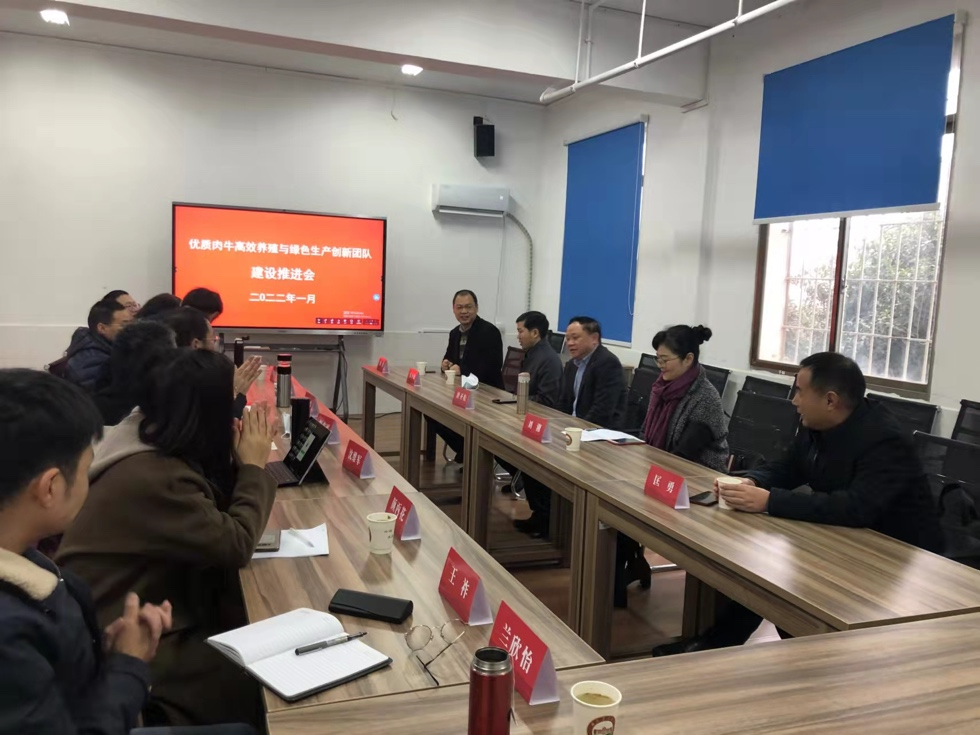 2022年1月20日,湖南省科技创新团队“优质肉牛高效养殖与绿色生产创新团队”建设推进会在学校召开。湖南省科学技术厅引智处刘湘调研员,永利yl23411官网唐圣松副校长、科技处匡勇处长、人事处(人才办)伍小松处长(主任)、动科院贺喜院长,以及创新团队全体成员参加会议。