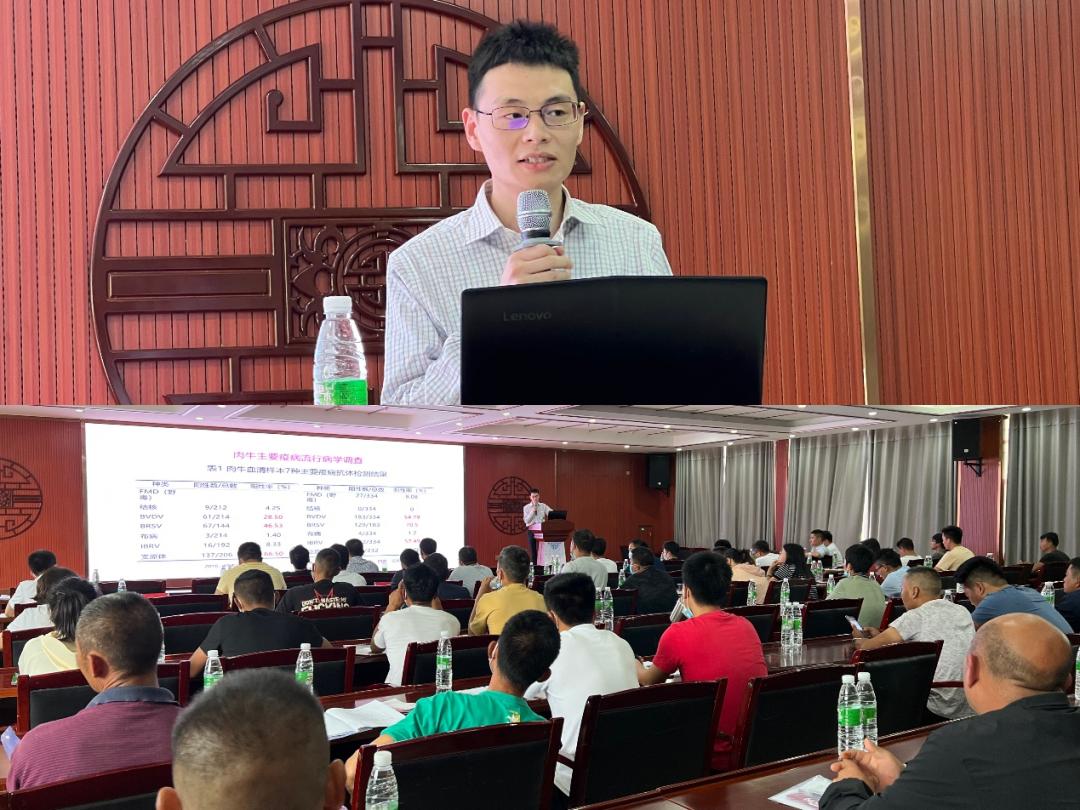 永利yl23411官网副教授刘磊针对肉牛养殖疾病防控技术做专题报告。从肉牛主要疾病种类、疾病防控原则和常见疾病防控技术三个方面展开讲解,指导参训学员要遵循养重于防、防重于治、防治结合、综合防控的基本原则,从管理手段上有效提高肉牛健康养殖水平。