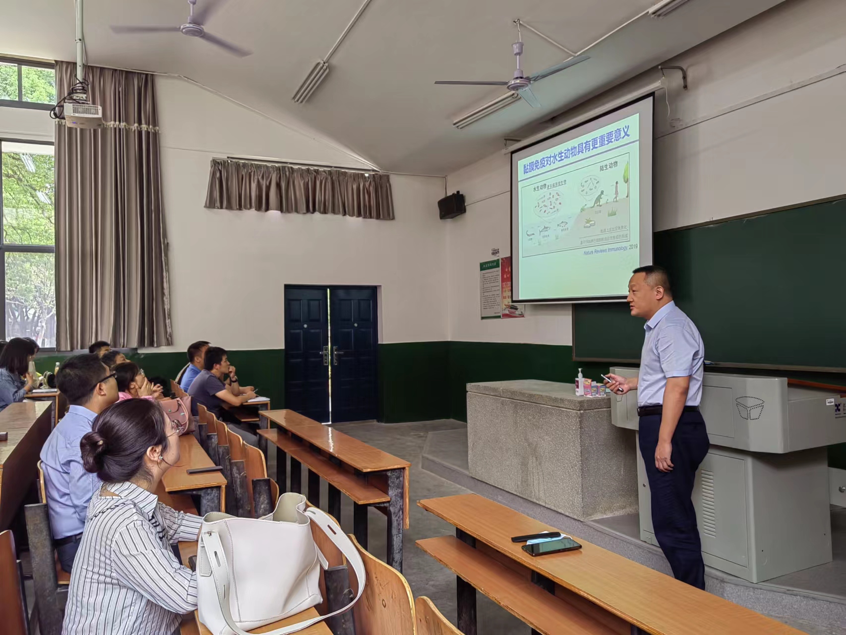 徐镇教授的报告深入浅出,细致精彩,获得永利官网师生热情响应,与会的老师和同学就鱼类黏膜IgT的抗病毒机制、以及IgT靶向益生菌应用于鱼类黏膜疫苗等相关问题与徐镇教授展开了热烈的讨论交流。