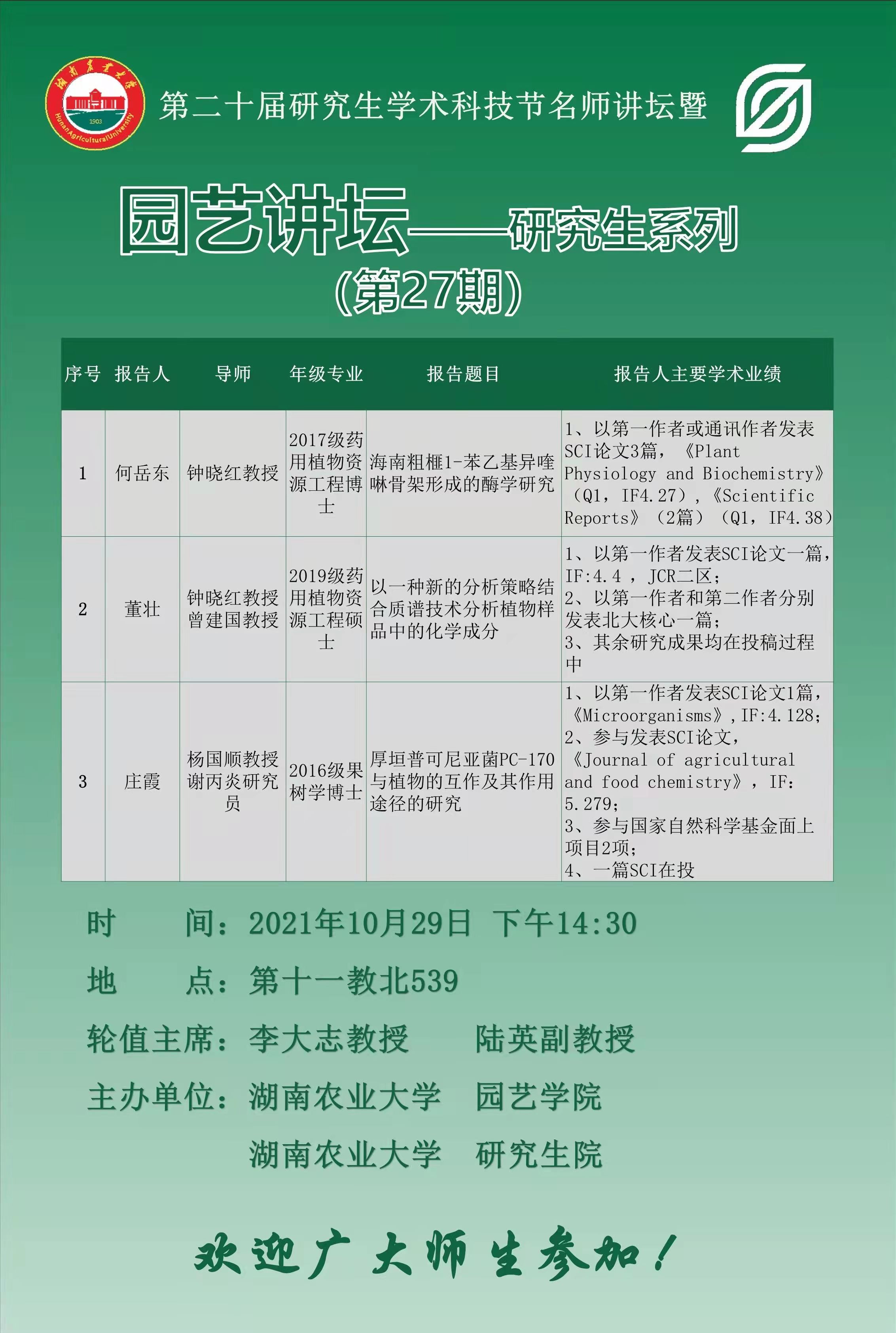 园艺讲坛——研究生系列第27期