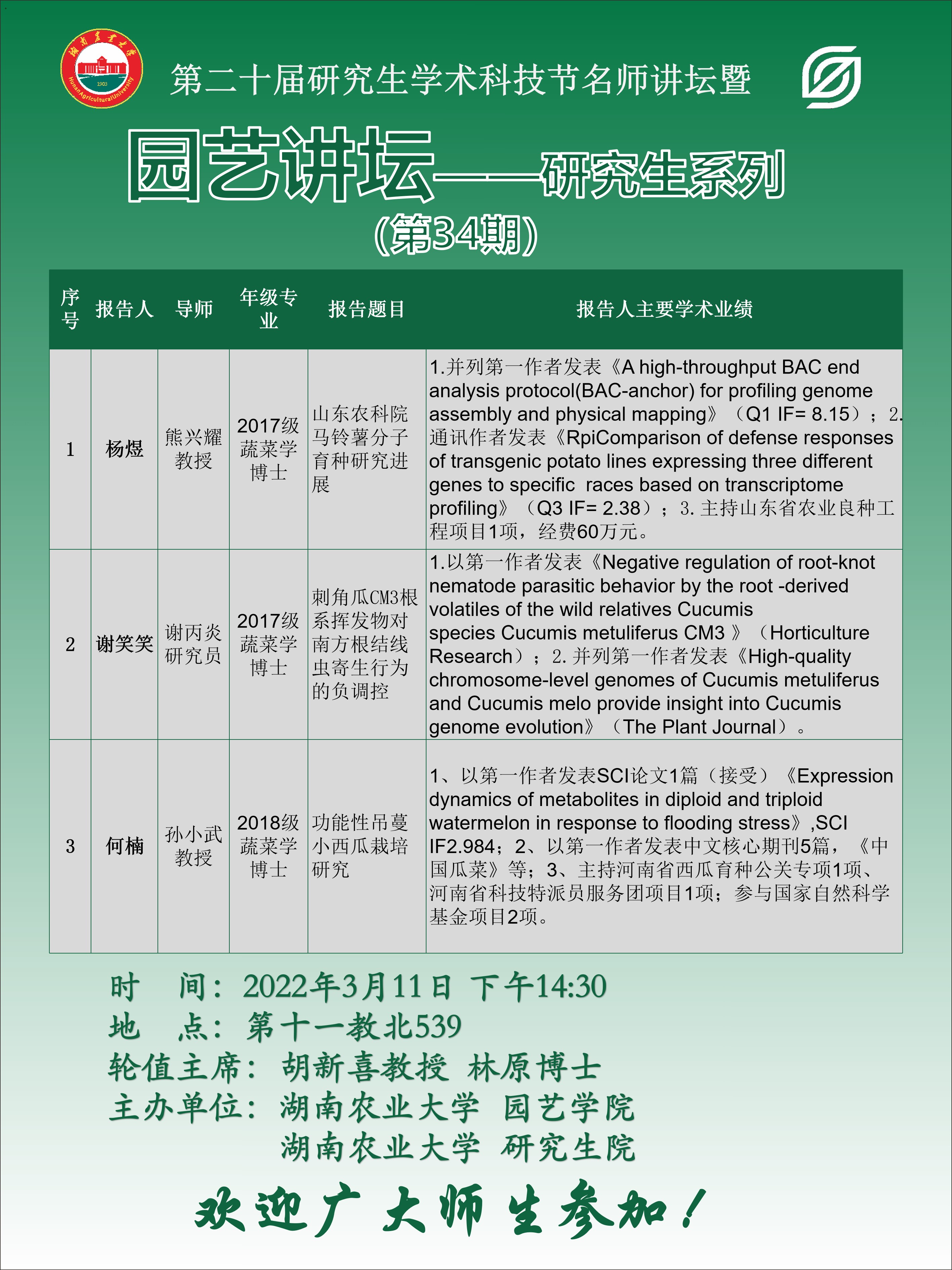园艺讲坛----研究生系列